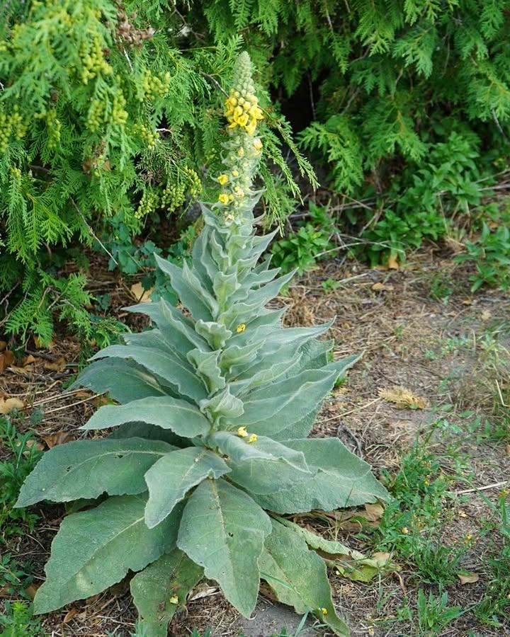 Mullein is relatively easy to identify due to its distinctive characteristics. The plant typically grows between 60 and 180 cm tall and has a single, unbranched stem. Its large, velvety leaves are arranged in a rosette at the base, and the stem bears a dense spike of small, yellow flowers. The leaves are soft and fuzzy to the touch, which helps the plant retain moisture. Thanks to its unique appearance, mullein is easy to identify if you know what to look for.