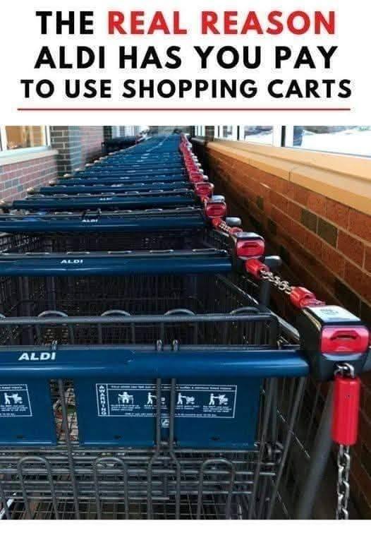 Theft Prevention: Shopping cart theft is a significant issue for retailers, especially in areas with rising economic hardship. Carts can be expensive to replace, often costing between $75 and $250 each. By requiring a deposit, Aldi deters theft and reduces the financial burden of replacing stolen carts.